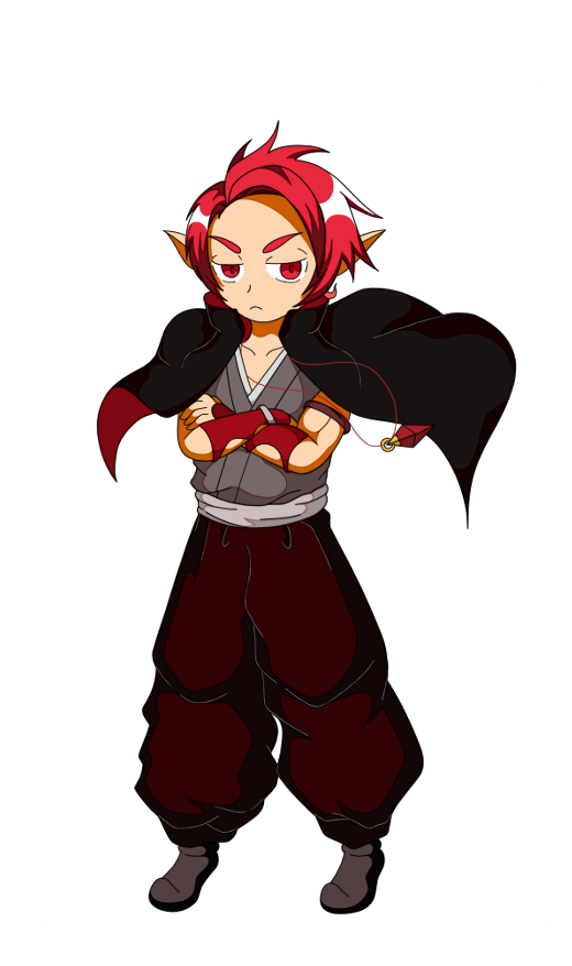 強力な火球を操る火属性の魔人。 お気に入りポイントは100点。 こいつはカレンダーを見た時に降りてきたキャラで、この先多く登場する着物を着たキャラのシリーズは全てこいつが先駆けとなったという意味でも、非常に思い入れのあるキャラクターです。