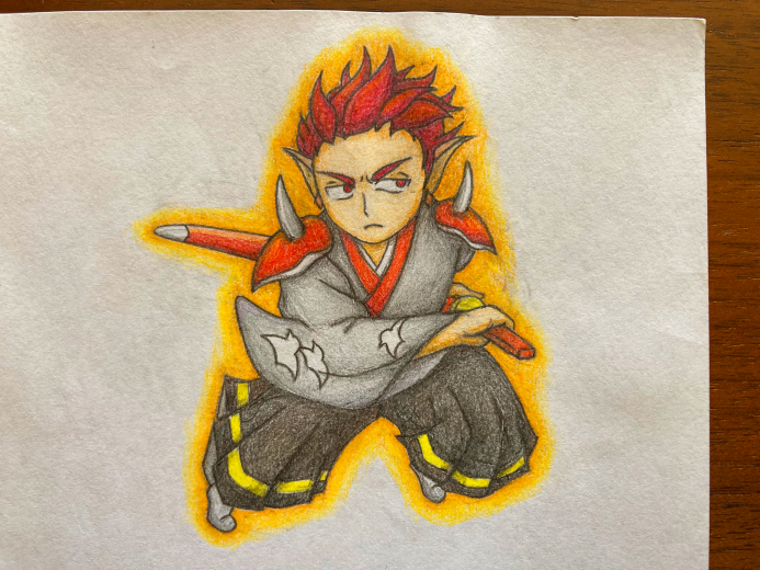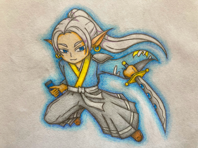 電撃を操る天属性の魔人。 お気に入りポイントは100点。 『超強いショタ』をイメージして描いたキャラクターです。 武器は槍を使って戦うと想定しているのですが、スペースと画力不足のために今回は描けず。